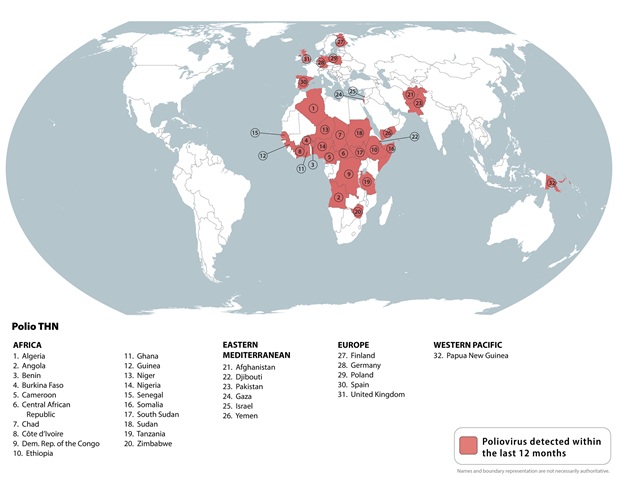 以下目的地有流行的脊髓灰质炎病毒: